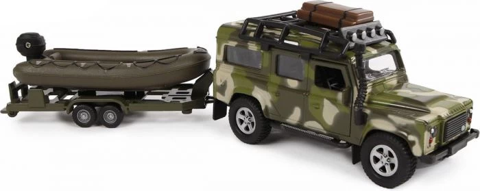Kids Globe Land Rover met aanhanger + boot military die cast 27cm