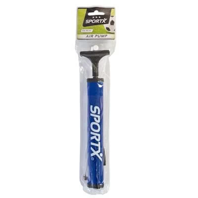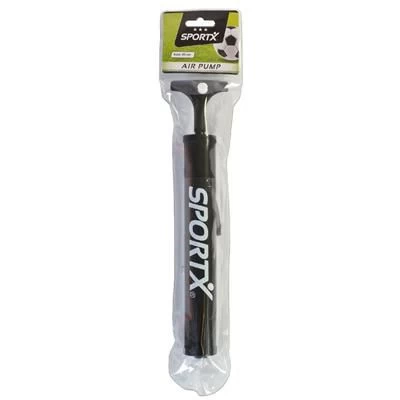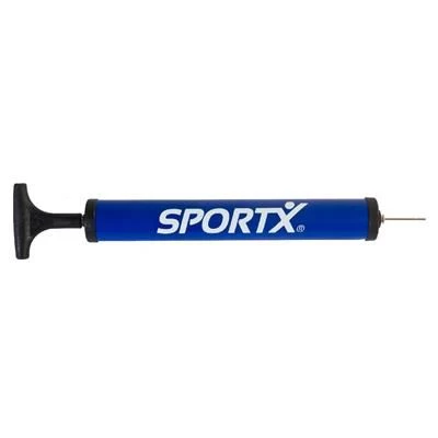 SportX balpomp, in 3 assorti kleuren. Met handig verloopstukje en een naald van metaal. Lengte van de pomp: 30 cm. Wordt geleverd in polybag met SportX header.