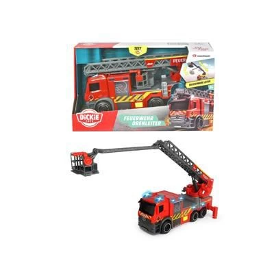 Dickie Toys Brandweerauto Met Licht En Geluid 23 Cm. Mercedes brandweerwagen van 23 cm met licht- en geluidseffecten. De brandweerwagen heeft een uitschuifbare ladder en standaarden aan de zijkanten om stabieler te staan. Geschikt voor kinderen vanaf 3 jaar.