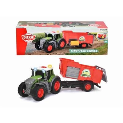 Dickie Toys Tractor Fendt Met Aanhanger En Licht En Geluid 26 Cm. Speelgoed tractor van 26 cm met een rode aanhanger en een hooibaal. De tractor heeft licht- en geluidseffecten. Geschikt voor kinderen vanaf 3 jaar.