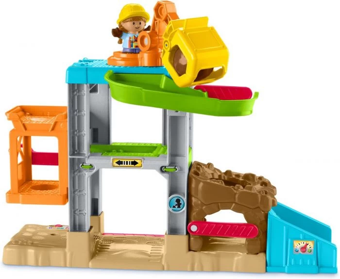 Kleine bouwvakkers kunnen eindeloos stenen laden, vervoeren en lossen op de Little People Leren Laden Bouwplaats van Fisher-Price. Deze speelset voor peuters is voorzien van een draaiende kraan, een werkende lift, een duwkiepwagen en 2 bouwervakkerfiguren om de klus te klaren. Wanneer kinderen de bouwplaats verkennen, klinken er leuke geluiden en muziek om de actie nog levendiger te maken!