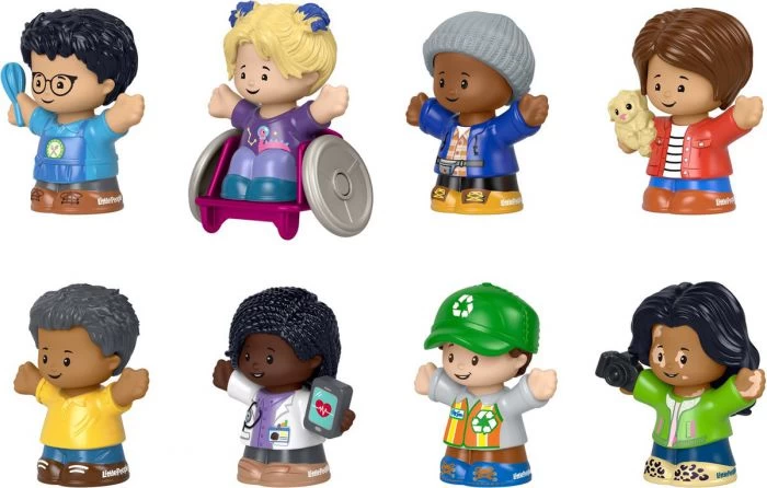 Vier de schoonheid van diversiteit met 8 personages uit de grote wereld teruggebracht tot Little People®-speelgoedformaat.