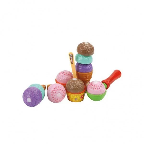 Heerlijk toch, zelf je eigen ijsje maken. Doe de lekkerste smaken bij elkaar en maak hem zo groot mogelijk. Set met 3 ijshoorntjes, 2 bakjes en 9 ijsbolletjes. Inclusief ijsschep en lepeltje.