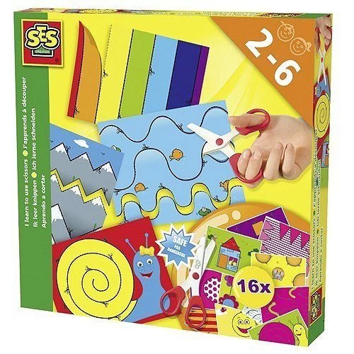 Een schaar gebruiken moet iedereen leren. Met deze set leer je dit op een veilige manier. Dit schaartje kan namelijk alleen papier knippen. Kleren en haren lopen dus geen enkel risico. De voorbedrukte knipvellen bevatten knipopdrachtjes variërend in moeilijkheidsgraad. Met de producten van SES Creative ontwikkel je op een leuke en veilige manier je creativiteit, vaardigheden en kennis.