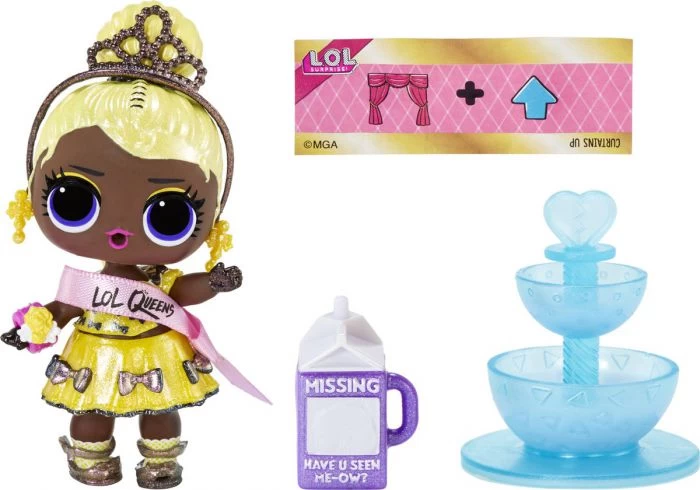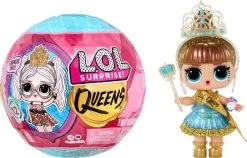 Het zijn B.B.’s die trots zijn op wie ze zijn en hun BFF’s altijd steunen. Deze koninginnen zijn dol op plezier maken en laten hun coole stijl zien op de catwalk, de dansvloer of op een galabal. Queens zijn ook hartsvriendinnen die elkaars kroontjes rechtzetten en altijd met een rechte rug op hun troon zitten. PAK 9 VERRASSINGEN UIT met de LOL Surprise Queens-poppen, inclusief mode en majestueuze accessoires! LOL Surprise Queens-poppen hebben elk hun eigen troon en een tiara die jij kunt dragen!