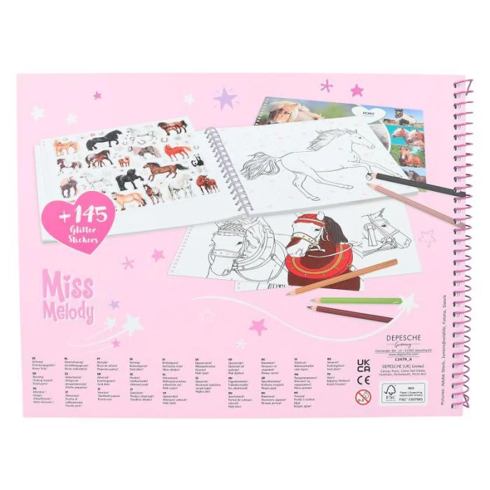 Paardendromen om in te kleuren: dat kan in het kleurboek met spiraalrug met 44 pagina’s vol kleurplaten uit de wereld van Miss Melody. Tevens ingesloten: 3 stickervellen om je kunstwerken nog mooier te maken.