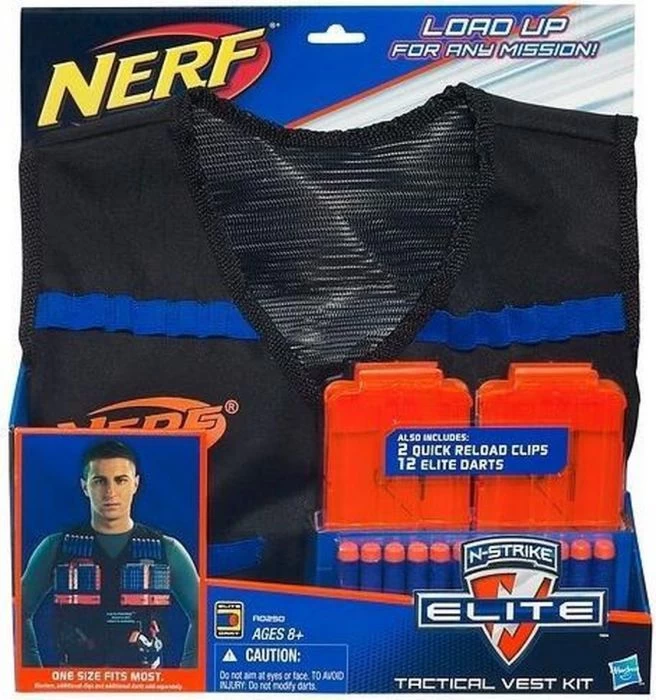 Het ultieme NERF N-strike Elite vest om je blasters en darts in mee te nemen. Met 12 lussen voor 12 darts, CLIP magazijnen opslag en zakken om blasters in op te bergen. Inclusief 2 CLIP magazijnen en 12 N-strike Elite Darts. Verstelbaar zodat hij bijna altijd past. (1 maat) 8+