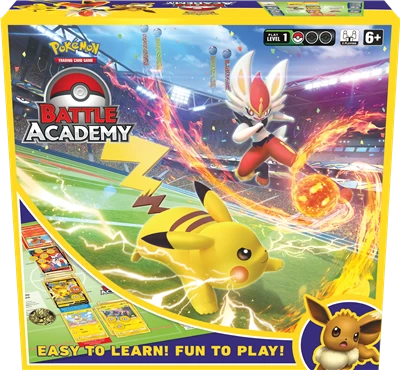 Bereid je voor op een Pokémon-gevecht met de kant-en-klare Pokémon Trading Card Game Battle Academy! De Battle Academy bevat alles wat twee spelers nodig hebben om te spelen, met regelboekjes voor de decks, zodat je eerste game gemakkelijk te leren is. Je kunt Cinderace of Pikachu kiezen om je team te leiden in een heads-up-gevecht tegen een andere Trainer. Verwissel dan de decks om Eevee tegen Cinderace of Pikachu te spelen en leid een ander team Pokémon de arena in! Met een beetje strategie en een beetje geluk kun je de strijd aangaan met de besten!