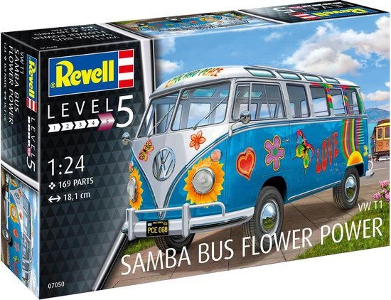 Een uitdagende modelbouwset van de legendarische VW T1 in het Samba-busontwerp met een meerkleurig decor. Deze Flower Power-bus is een replica van het echte voertuig en gemaakt op een schaal van 1:24. Deze set van Revell is eenvoudig te bouwen en aan elkaar te klikken. Lijm, verf en gereedschap zijn niet nodig.