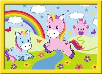 Schilderen op nummer van Ravensburger – iedereen kan schilderen! Dankzij de gekleurde buitenlijnen kunnen kinderen de afbeelding van de Eenhoornwereld en de benodigde kleuren sneller herkennen. Zo is het kinderlijk eenvoudig de kunstenaar in jezelf wakker te maken! Met grote schilderoppervlakken en veel verschillende kleuren zijn de schilderplaten van de schilderen op nummer Classic-serie van Ravensburger zeer geschikt voor de jonge kunstenaar. Uitpakken en aan de slag!