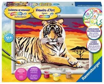 Schilderen op nummer van Ravensburger – iedereen kan schilderen! Dankzij de gekleurde buitenlijnen kunnen kinderen de afbeelding van de tijger en de benodigde kleuren sneller herkennen. Zo is het kinderlijk eenvoudig de kunstenaar in jezelf wakker te maken! Met grote schilderoppervlakken en veel verschillende kleuren zijn de schilderplaten van de schilderen op nummer Classic-serie van Ravensburger zeer geschikt voor de jonge kunstenaar. Uitpakken en aan de slag!