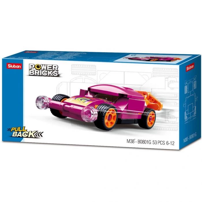 Met de Sluban Power Brick Car Purple Wing beleef je urenlang bouw- en raceplezier Met deze auto vlieg jij over de racebaan! Zet hem razendsnel in elkaar en trek hem naar achteren om de pullbackmotor te activeren. Laat hem los en hij racet vliegensvlug over de baan! Durf jij het op te nemen tegen de andere Sluban Pull Back Power Bricks auto’s? Sluban Power Brick Car Purple Wing is geschikt voor kinderen vanaf zes jaar. DEELNEMER VAN HET BÉSTE SPEELGOED VAN NEDERLAND!