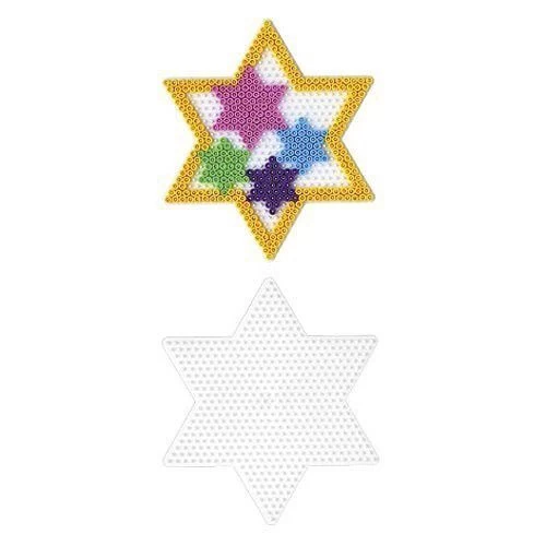 Strijkkralen kun je in bijna elk gewenst patroon leggen en dan door middel van strijkpapier en een strijkijzer samensmelten. Maar daarvoor heb je natuurlijk wel een grondplaat nodig. Grote grondplaat in de vorm van een ster.