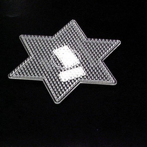 Strijkkralen kun je in bijna elk gewenst patroon leggen en dan door middel van strijkpapier en een strijkijzer samensmelten. Maar daarvoor heb je natuurlijk wel een grondplaat nodig. Transparante, grote, grondplaat in de vorm van een ster.