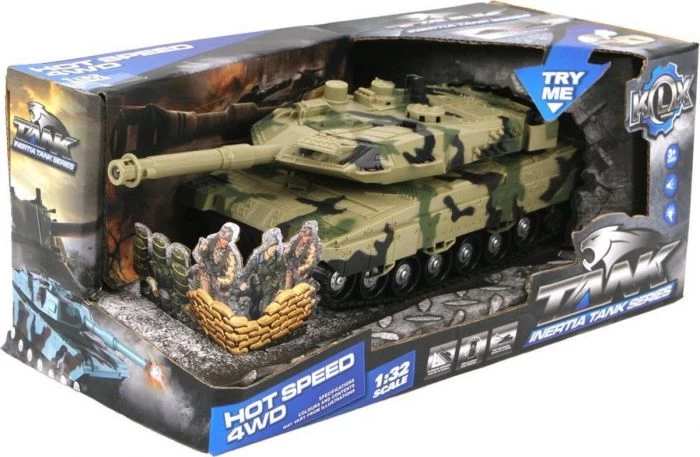Stoere tank met pullbacksysteem die veel aankan. De koepel kan 360 graden draaien en ook het kanon kan op en neer zodat je het doel altijd raakt. De tank zelf heeft geen enkel probleem met het terrein en kan heuvels aan tot een hoek van 45 graden. Kortom: met deze tank ben je helemaal klaar voor de strijd!