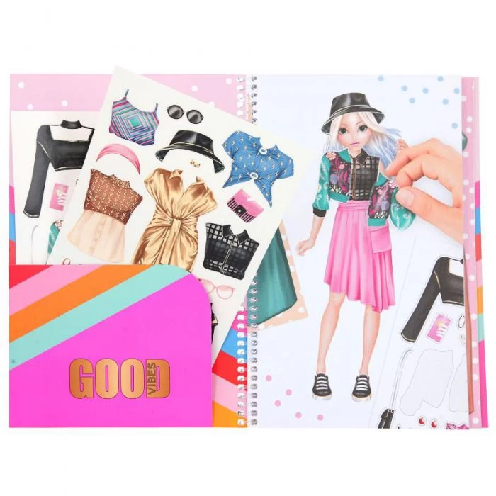 Ontwerpen en plakken: dat kan allemaal in het grote TOPModel Dress me up stickerboek. Het boek zit op 24 pagina’s vol met TOPModel figuurtje die met behulp van de stickers super trendy looks willen krijgen. Inclusief: 5 vellen met papieren stickers en 2 vellen met coole foliestickers.