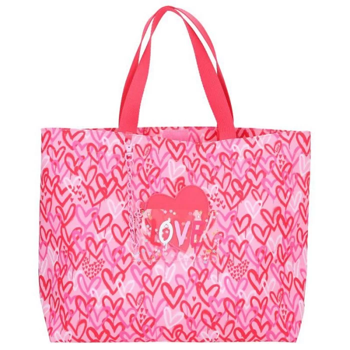 Om verliefd op te worden: de shopper One Love met extra vak voorop, klein binnenvakje en schattige hanger is door de all over print van hartjes echt een TOPModel highlight! Materiaal: 100 procent polyester; hart 100 procent polyurethaan; kleine tas 100 procent PVC; ketting 100 procent metaal.